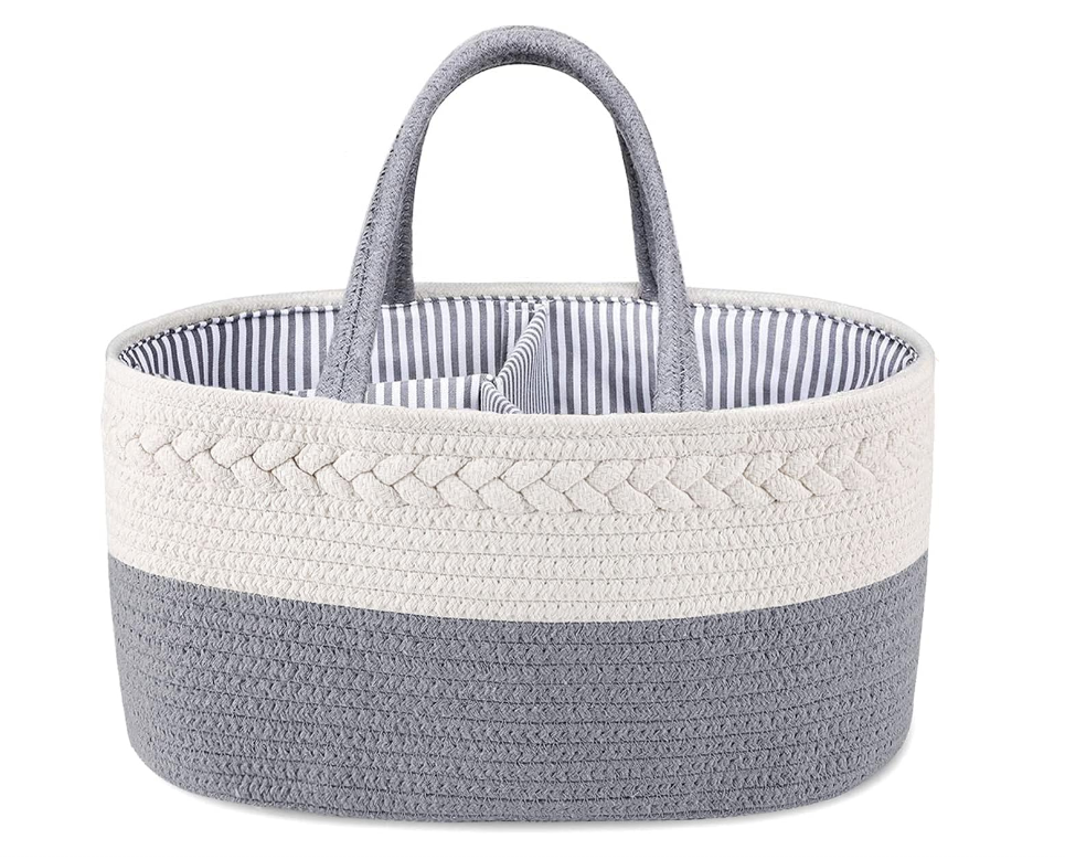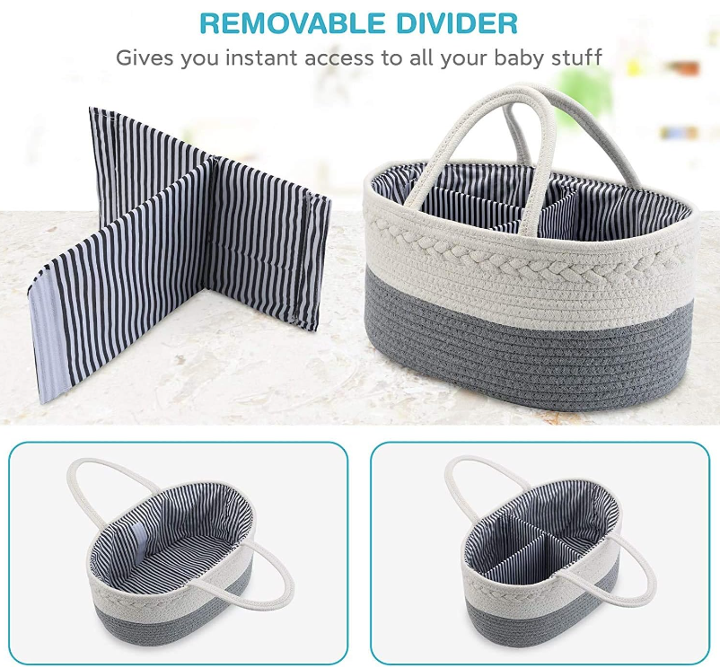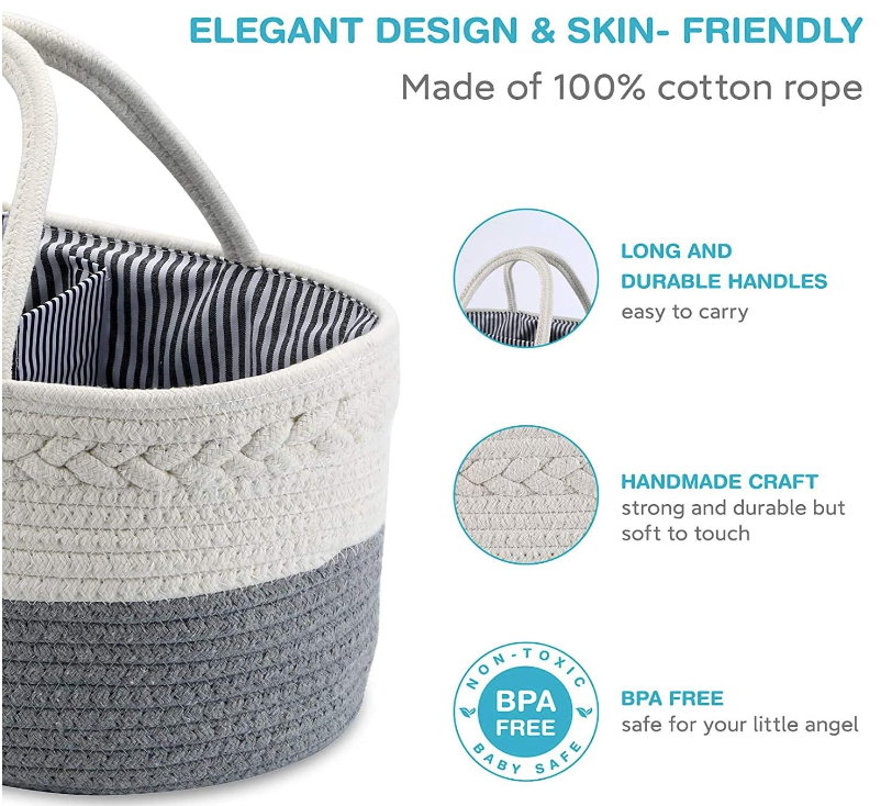 منظم حفاضات الأطفال مصنوع يدويًا من حبل قطني بنسبة 100%. يتميز بتصميمه الأنيق، فهو ناعم وصديق للبيئة.