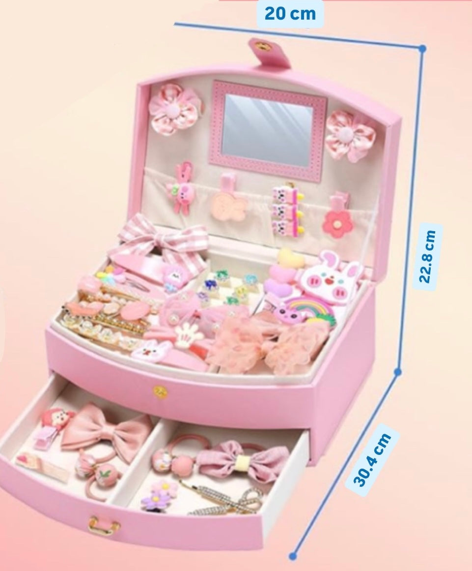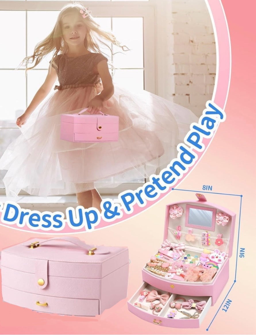This jewelry organizer box is made of high-quality leather, dust-proof and durable. It can store little girls' jewelry and hair accessories.